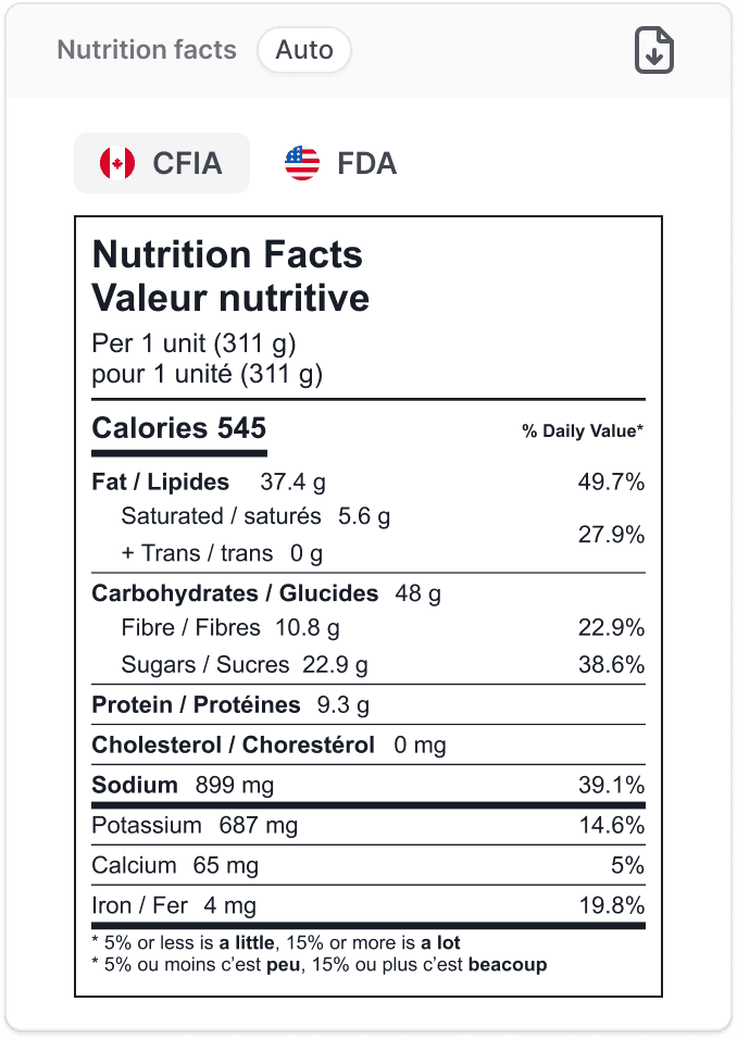 Auto-generate compliant nutrition labels from any recipe