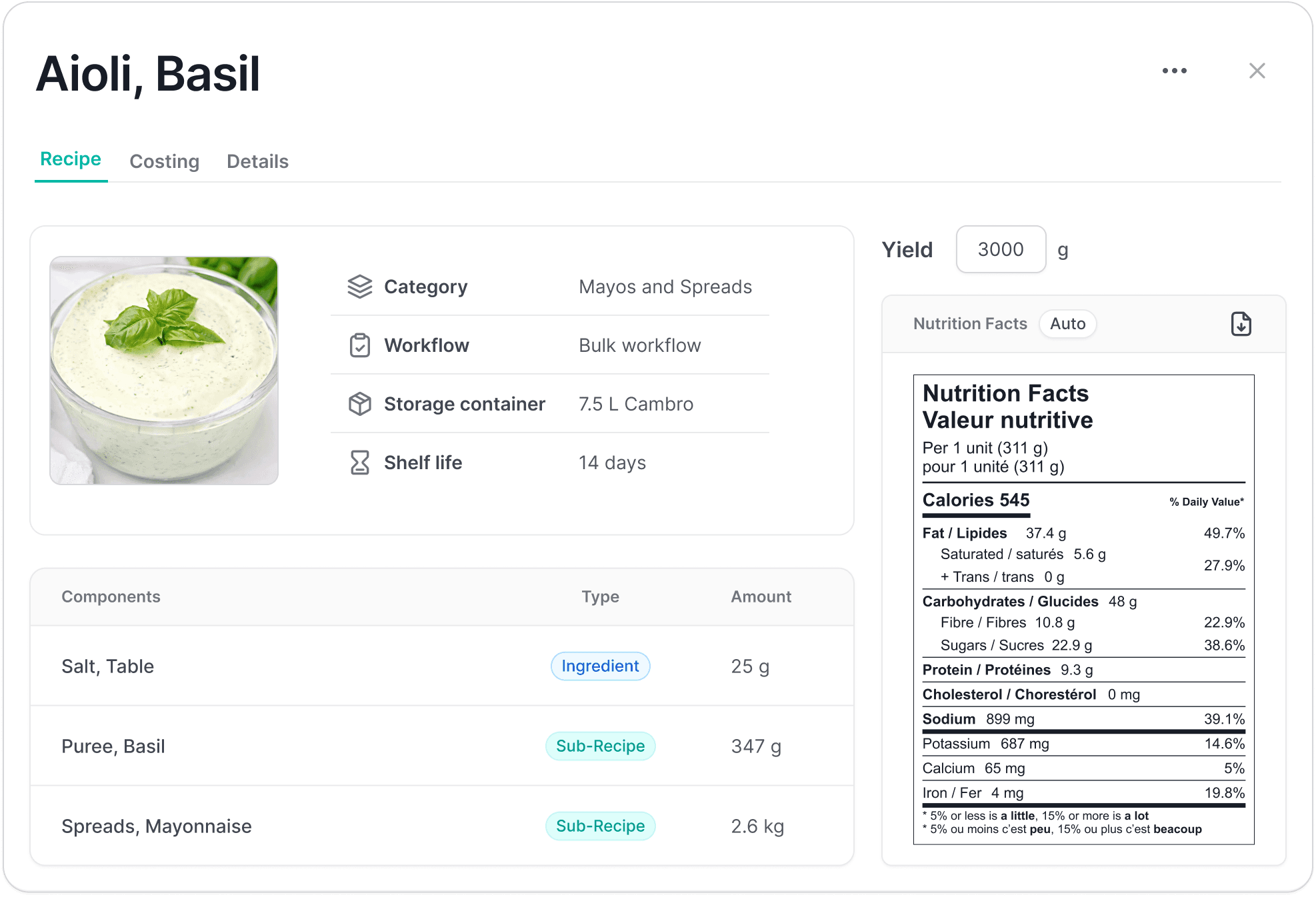 Account for the actual usable portion of every ingredient with built-in yield calculations that factor in prep loss, ensuring your costs reflect kitchen reality.